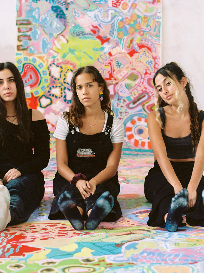 É uma catarse colectiva a que é criada entre a intenção e a experimentação. Um jogo em que as regras vão sendo escritas individualmente e à medida que cada uma vai pintando, sempre ao mesmo tempo das outras. Nasce morre, morre renasce. O quê? Um pintura colectiva que nasce em spray, acrílico, pastel seco, pastel de óleo e esmalte e que diz coisas separadas e misturadas onde algumas anulam outras como num choque cósmico de matéria pictórica em ebulição e colisão que tanto mata como cria. Ali, naquele rolo comprido e estendido no chão, “nada se perde, tudo se transforma”. Transforma em mensagens directas ou subliminares, e que serão novamente separadas ao estarem disponíveis a metro como se fosse um simples papel de parede, tecido, outro material, ou até mesmo o valor de uma casa repartida e avaliada em metros quadrados. É assim a arte que elas pretendem fazer daquele rolo, arte ao metro quadrado, pedaços de ideias das três em coloridas pinturas abstractas ou figurativas ou ambas mas levadas como se fosse uma matéria barata comprada num qualquer armazém de retalho.